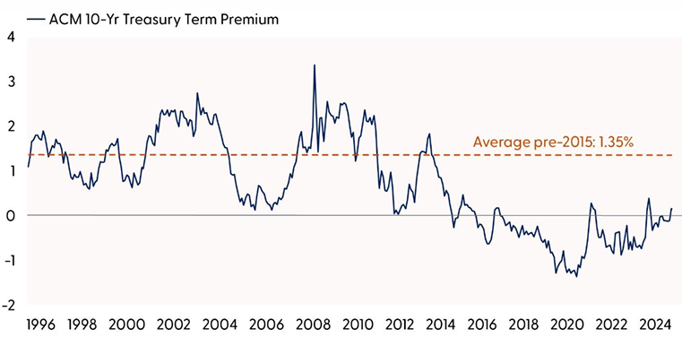 Treasury term premium remains below historical averages