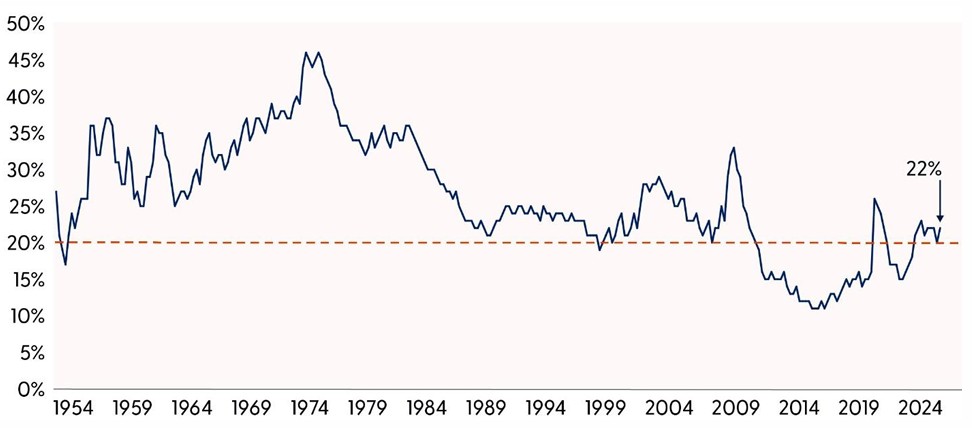 Of note though, since no change to the amount of coupon issuance is expected, Treasury bill issuance will likely continue to be a larger share of total Treasury issuance. Currently, bill issuance represents 22% of total issuance — which is above the 20% ceiling that the TBAC has recommended — and looks to be headed higher. Both Bessent and Trump have noted that long-term interest rates are still high (the weighted average coupon of existing Treasury debt is around 3%), so refinancing debt using coupon-paying securities (Treasury tenors from 2-year to 30-year) at current levels would increase interest expenses, which already makes up roughly 20% of tax receipts. As such, the administration has leaned into using more bills to finance deficits.