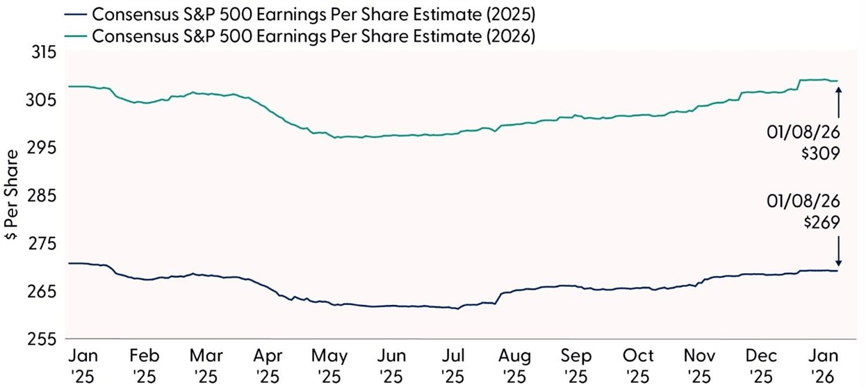 As we wrote in our 2026 Outlook, and as we’ve already observed so far in this young new year, 2026 is going to be a lot about policy. Fiscal policy will help drive growth. Regulatory policy will likely help certain segments of the economy. And monetary policy support is expected to continue. Expect that macroeconomic backdrop to be supportive of corporate profits.