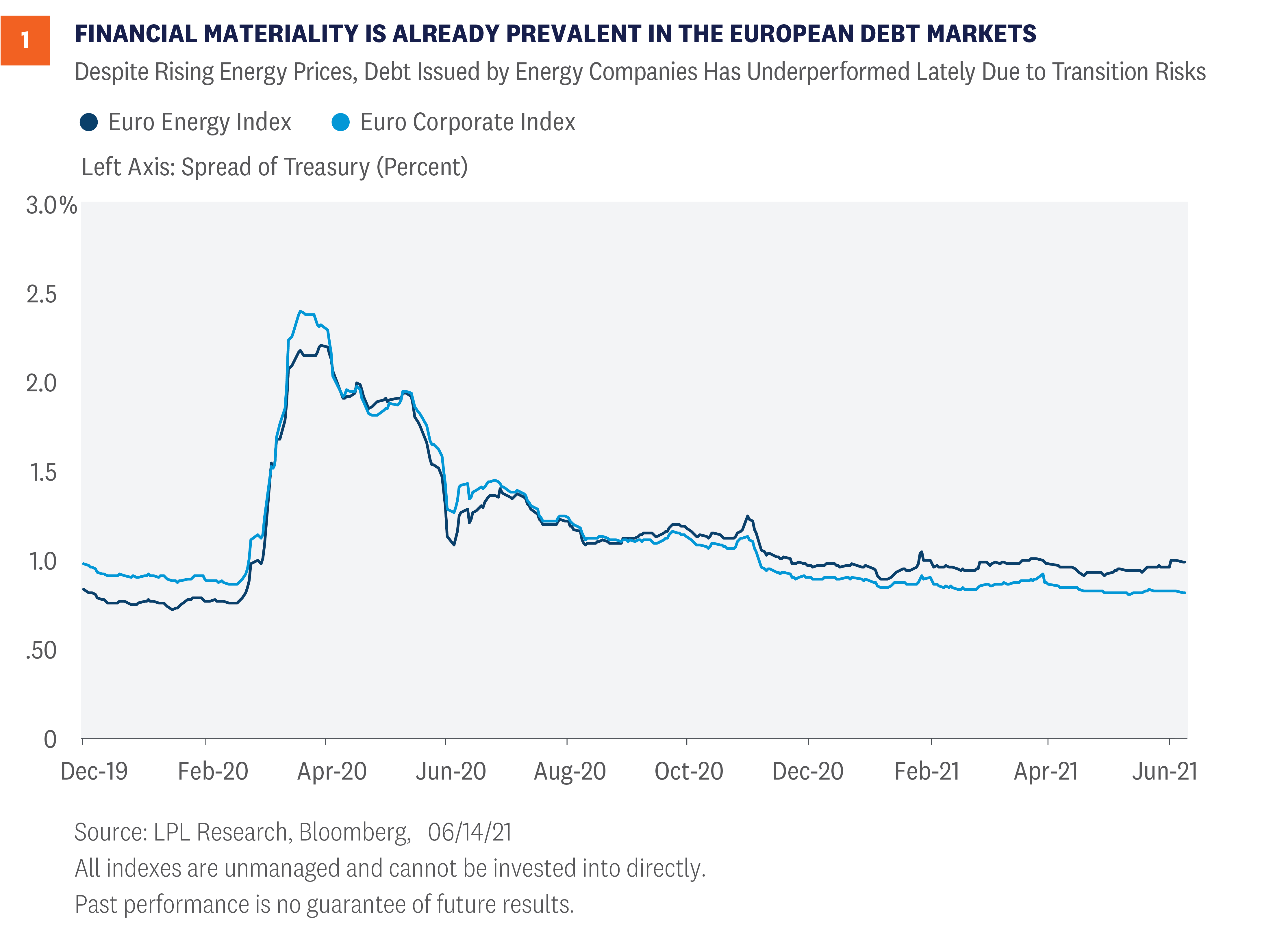 Equity returns in the energy sector have led the S&P 500 Index during 2021 as crude oil prices have soared and, on the surface, seem to show little concern for oil and gas companies’ approach to managing climate risks. However, energy sector bond investors appear to be reevaluating their holdings to get ahead of possible changes. Bond investors, who typically have a longer investment horizon, are increasingly having to consider the financial materiality of climate change.